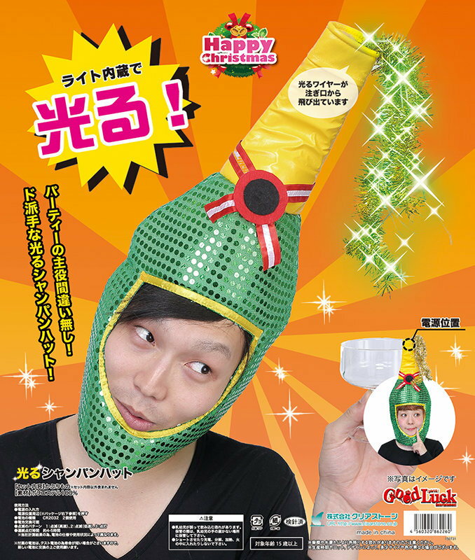暗闇で光って点滅するLEDワイヤー付き!パーティーやクラブで目立っちゃおう!お祝いといったらシャンパン!キラキラ素材と噴き出したシャンパンがパーティーを盛り上げます!暗闇で光らすとそそぎ口からまるでシャンパンがでるように見える!誕生日、クリスマス、結婚式など色々な場面で使えます!【セット内容】かぶりもの【素材】ポリエステル100%【洗濯表示】-【対応サイズ】-【メイン部分の長さ(着丈等)(cm)】57【開き】かぶり【バスト(cm)】-【ウエスト(cm)】-【ヒップ(cm)】-【肩幅(cm)】-【袖丈(cm)】-【股下(cm)】-【その他パーツ情報】-【裏地の有無】一部有り