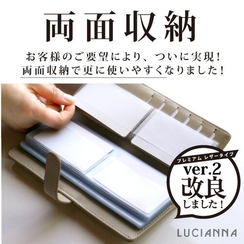 累計販売個数 85,000個突破! LUCIANNA カードケースシリーズ ついに!スリムの本革タイプが スリム/プレミアムレザー「ver.2」へ \ バージョンアップ!/ スリム/プレミアムレザー「ver.2」ココがポイント! ・両面収納 お客様のご要望により、ついに実現! 両面収納で更に使いやすくなりました! ・カード80枚収納 1ポケットにカードを1枚入れて80枚収納可能に。