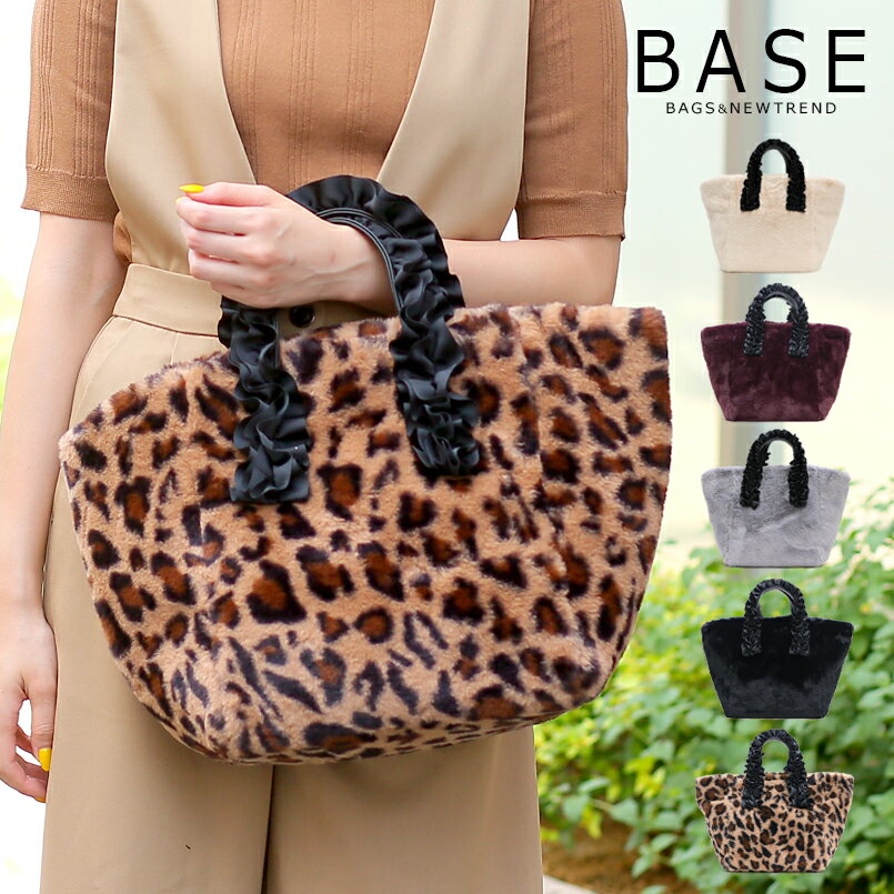 BASE ベース 公式 フリル ファー トートバッグ 無地 レオパード ヒョウ柄 大容量 かわいい 可愛い お洒落 女性 シンプル キレイ ふわふわ モコモコ マチ広 レディース カジュアル フェミニン 秋 冬 秋冬